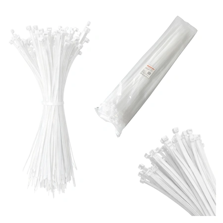 - Białe opaski zaciskowe Tretytka UV o rozmiarze 4,8 x 500 mm zapewniają nie tylko estetyczne uporządkowanie przewodów, ale także wytrzymałość dzięki odporności na promieniowanie UV, idealne do długotrwałego zastosowania wewnątrz i na zewnątrz.