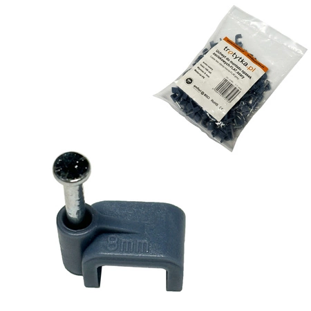 - Uchwyt do montażu kabli FLAT 8 mm szary, dedykowany do mocowania płaskich przewodów elektroenergetycznych podczas układania instalacji w budynkach. Gwóźdź o zwiększonej długości ułatwia wbijanie w różne materiały, zapewniając szybki i pewny montaż.